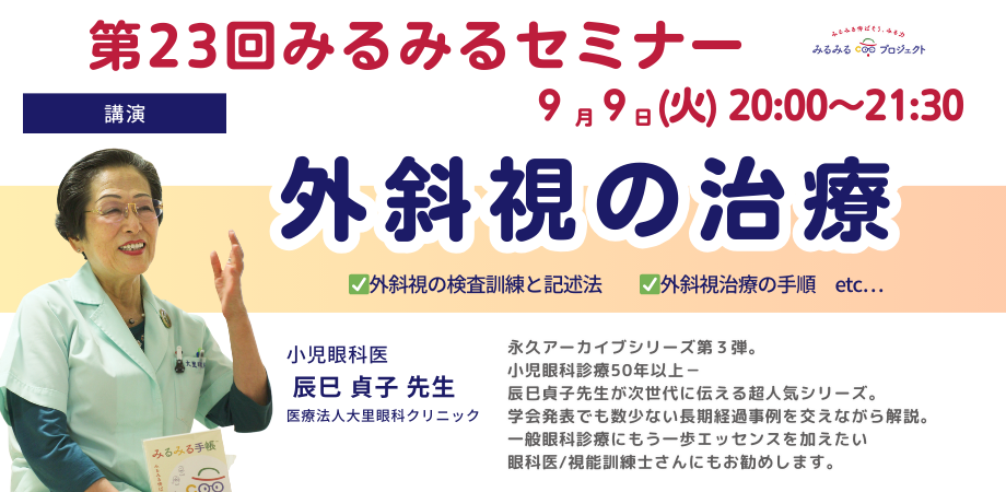 第22回みるみるセミナー2025.9.9(火)20:00~21:30 参加登録はこちら→https://23miru2s.peatix.com 協賛スポンサー募集セミナー運営維持のため協賛スポンサーを募集しております。(眼科クリニック様/企業様/団体様)セミナー内で感謝とともにお名前をご... -